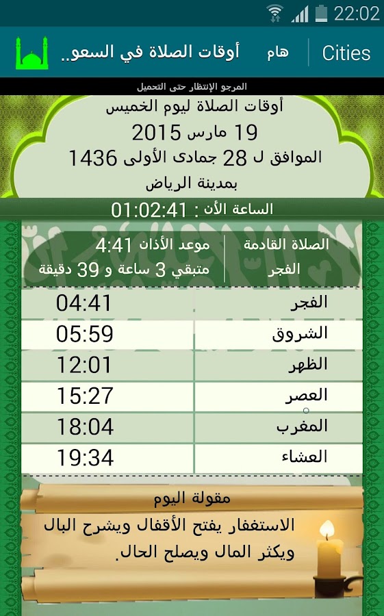 وقت الصلاة الرياض - مواقيت الصلاة لجميع مدن السعودية prayer times السعودية.
